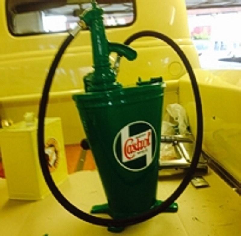 beautifully Restored oil Pump with new Hose, Paint. Nice piece of history for your man cave or use it...the choice is yours.